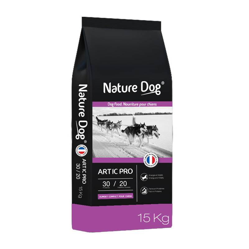 Les croquettes Artic Pro 30/20 Nature Dog, fabriquées en France, sont idéale pour soutenir les chiens ayant une activité intense ou ceux qui nécessitent une récupération physique.